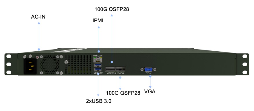 - Dual 100GbE QSFP28, 1GbE-T share with IPMI